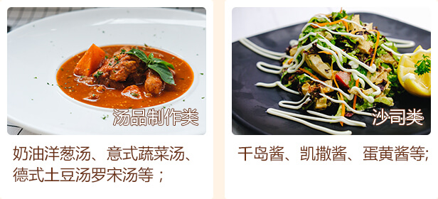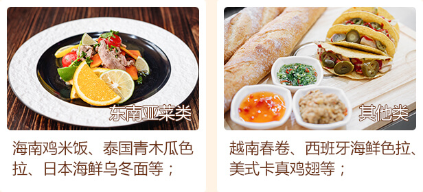 东南亚等各式西餐菜品的制作与研发。